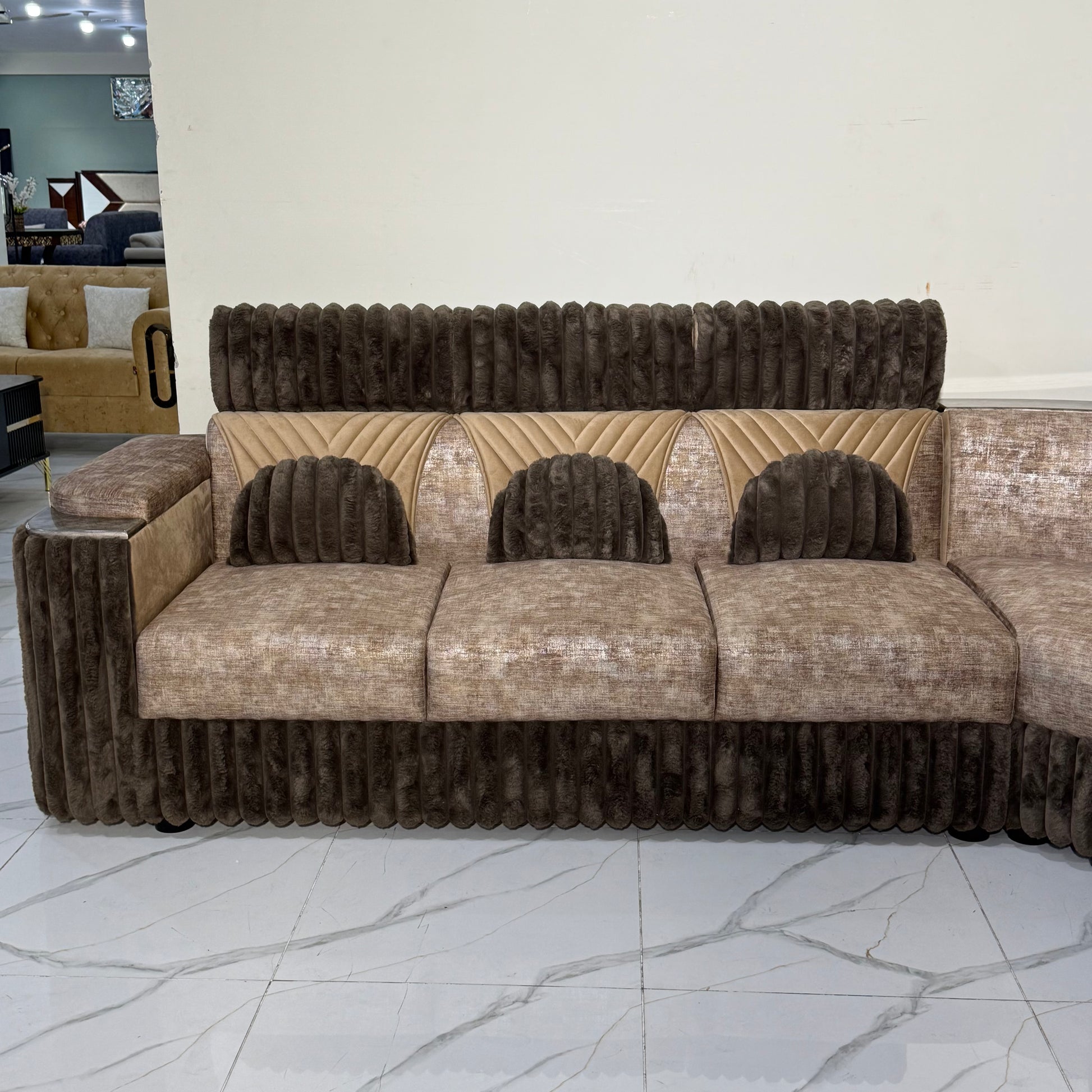 The LS33 8 Seater Sofa is designed to provide ample seating space with expert craftsmanship and durable materials. Its spacious layout comfortably accommodates eight people, making it perfect for large living rooms or social gatherings. The sofa combines robust construction with a refined aesthetic, ensuring both longevity and style. Ideal for creating a welcoming and comfortable environment for family and guests.